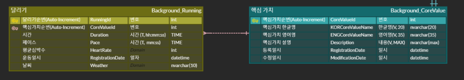 하나의 핵심 가치는 여러 달리기 활동 정보와 대응될 수 있습니다.