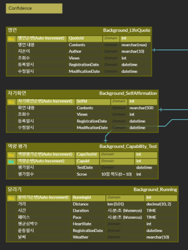 4. 각 도메인 분류명으로 정리한 후 Attribute의 데이터 타입과 길이를 조사한다.